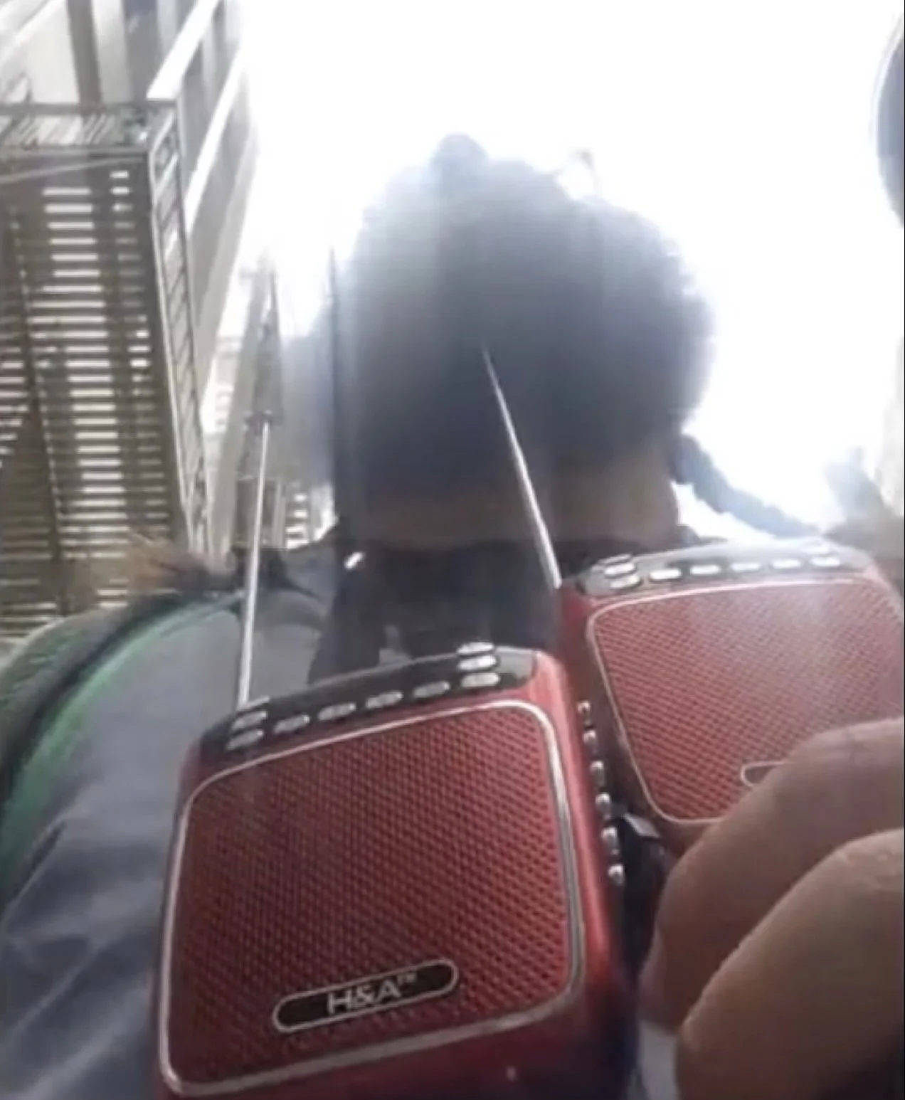 "symmetry; dance with the devil"". A performative walk from skid row to downtown LA, while wearing 5 radios tuned to different frequencies In this work interacting with strangers changed quickly from welcoming to abject.